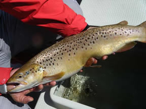 津波古 様 ブラウントラウト46cm、0.6kg T-シェル羽衣WSAのトローリング ポイントは成蹊 |