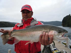 田畑 様 レインボートラウト48.0cm1.6kg 夜光貝のトローリング ポイントは箱根園 |