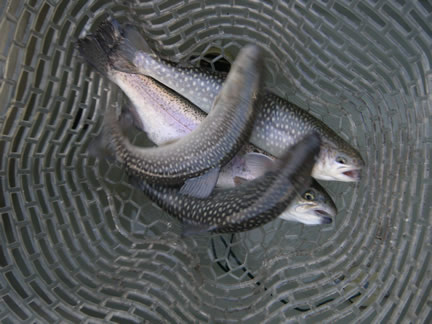 2015年3月8日(日曜) 天候:曇後雨雪/気温:2.0〜6.0/水温:6.0/風向:北東/水色:やや濁り 釣果 レインボートラウト25.0cm〜52.5cm/3尾〜10尾 サクラマス38.0cm〜40.5cm/2尾 イワナ35.0cm〜45.0cm/0尾〜4尾