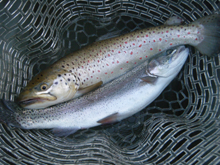 2015年4月27(月曜) 天候:晴/気温:11.0〜17.0/水温:13.0/風向:南西/水色:澄み 釣果 レインボートラウト25.0cm〜45.0cm/0尾〜4尾 ブラウントラウト42.0cm/1尾