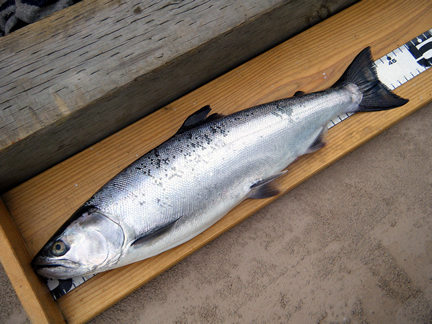 2015年5月14(木曜) 天候:曇時々晴/気温:11.0〜19.0/水温:15.5/風向:南西/水色:やや濁り 釣果 レインボートラウト25.0cm〜41.5cm/0尾〜10尾 サクラマス44.0/1尾