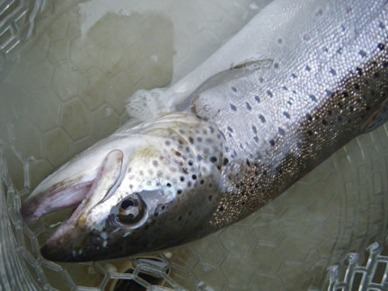 2015年5月16(土曜) 天候:雨後曇/気温:16.0〜21.0/水温:16.0/風向:南西/水色:やや濁り 釣果 レインボートラウト25.0cm〜43.0cm/0尾〜8尾 ブラウントラウト60.5cm/1尾 サクラマス44.0cm/1尾