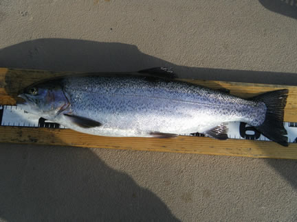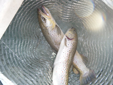 2016年4月16日(土曜) 天候:曇時々晴/気温:4.0〜15.0/水温:11.0/風向:南西/水色:やや濁り 釣果 レインボートラウト25.0cm〜54.0m/0尾〜7尾 ブラウントラウト35.0〜45.5cm/0尾〜2尾