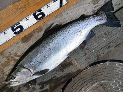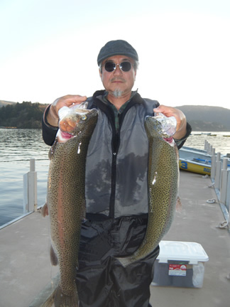 レインボートラウト49.5cm1.6kg ウッドベイトのトローリング ポイントは七里ヶ浜 |