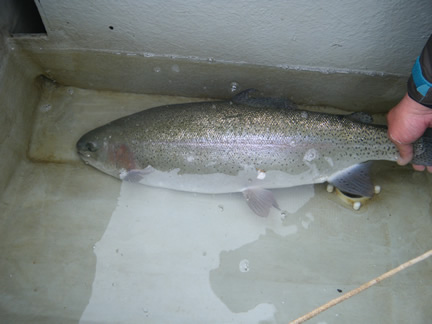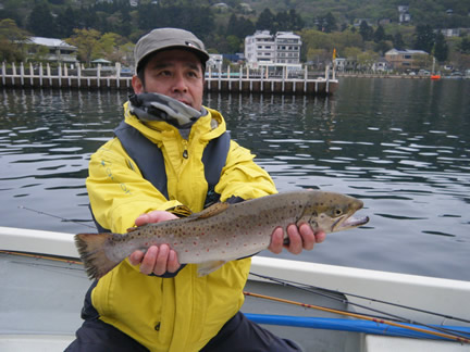2016年4月27日(水曜) 天候:曇/気温:10.0〜16.0/水温:13.0/風向:南東/水色:澄み 釣果 レインボートラウト25.0cm〜61.0m/0尾〜6尾 ブラウントラウト45.5cm/1尾