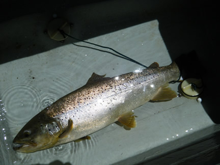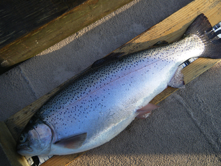 2016年5月18日(水曜) 天候:晴/気温:12.0〜19.0/水温:15.5/風向:南東/水色:濁り 釣果 レインボートラウト25.0cm〜50.5cm/0尾〜4尾 ブラウントラウト56.5cm/1尾