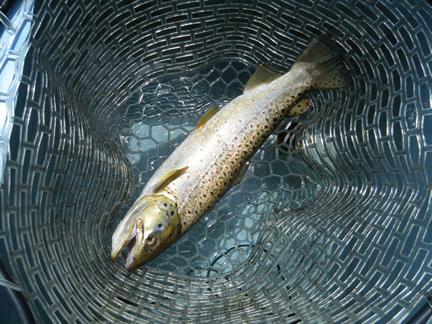 2016年5月19日(木曜) 天候:晴/気温:9.0〜12.0/水温:15.5/風向:東/水色:濁り 釣果 レインボートラウト25.0cm〜40.0cm/0尾〜4尾 ブラウントラウト40.0cm/1尾