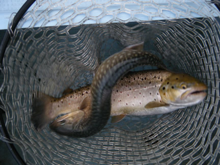 2016年6月21日(火曜) 天候:雨後曇・晴/気温:16.0〜24.0/水温:20.0/風向:北東/水色:澄み 釣果 レインボートラウト25.0cm〜45.5cm/0尾〜5尾 ブラウントラウト51.0cm/1尾