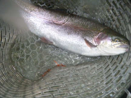 杉山 様 レインボートラウト49.00cm1.28kg フライハーリング ポイントは山のホテル沖