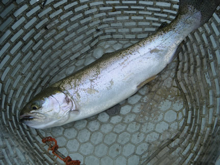 2018年10月4日(木曜) 天候:曇時々雨/気温:13.0度〜17.0度/水温:20.0/風向:北東/水色:やや濁り 釣果 レインボートラウト25.00cm〜44.50cm/0尾〜3尾