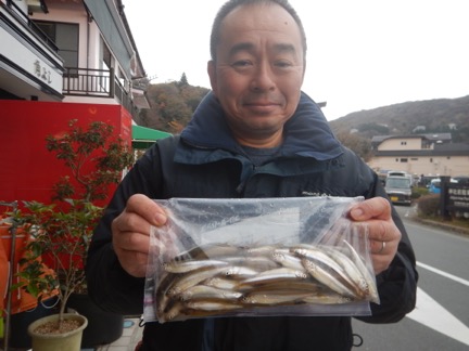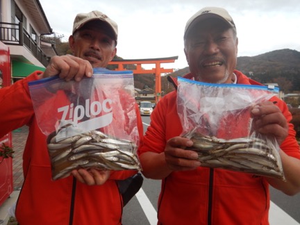 岩本 様 2名様1日ワカサギ1.6kg ポイントは神社沖・大島 紅サシアカムシ使用
